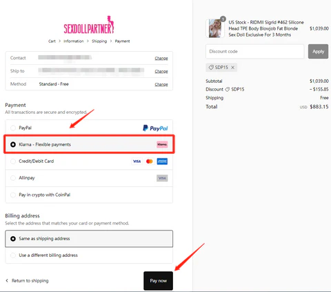 Buy Sex Dolls Now Pay Later with Klarna
